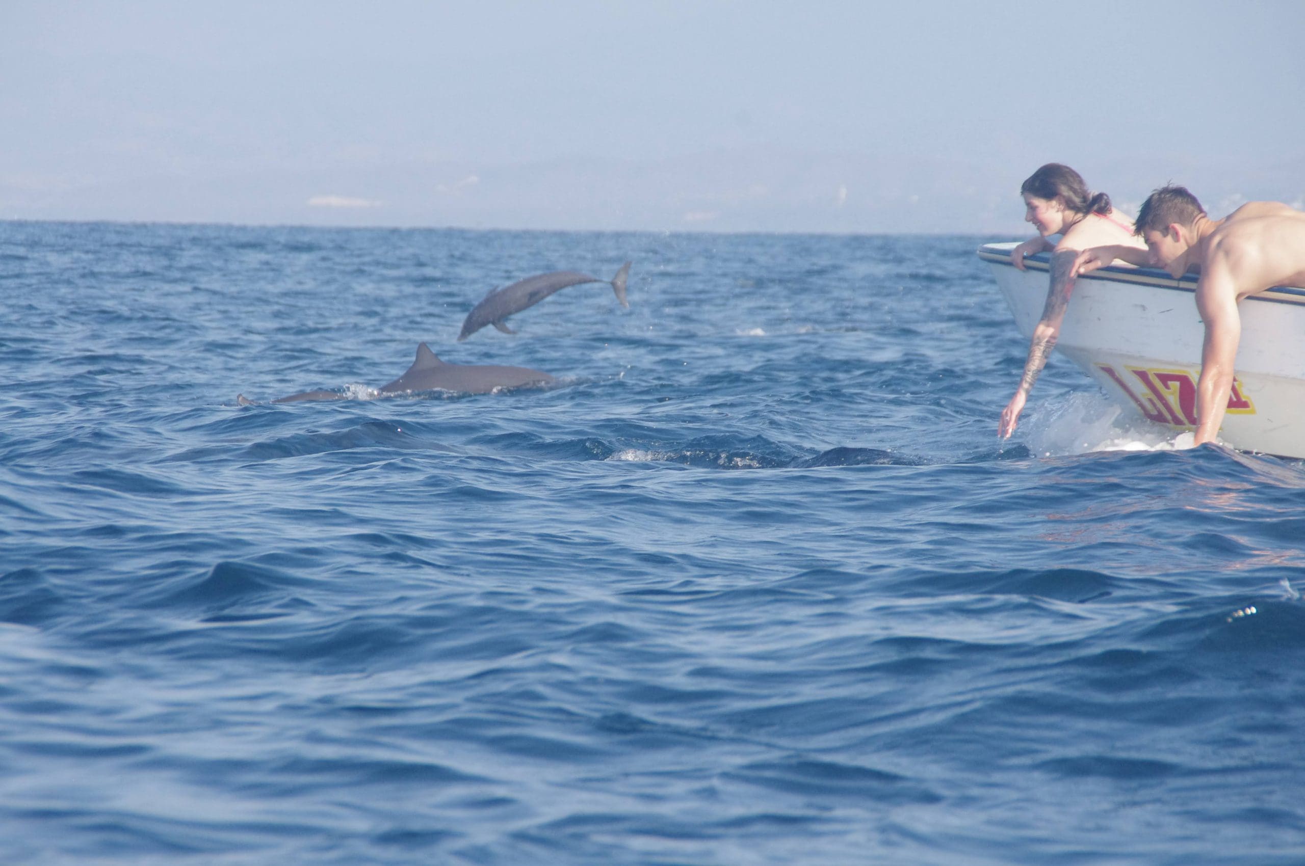 For the safety of both our guests and the whales, swimming with the whales is not allowed. But, you’ll have a blast snorkeling with dolphins, which is just as fun!