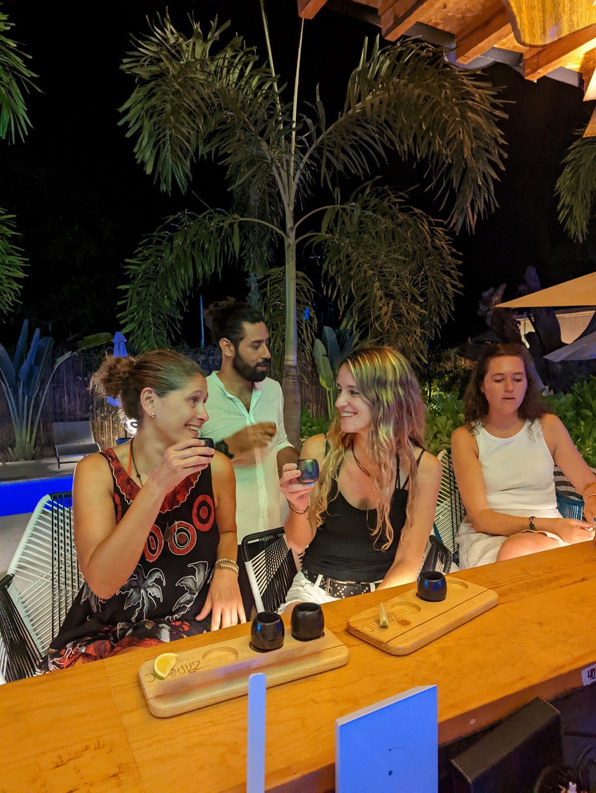 Iniciamos nuestro tour 7:30pm con una degustación de mezcal artesanal originario de Oaxaca cultivado y producido artesanalmente con nuestros maestros mezcaleros nativos de la región. Son 3 tipos de mezcal, espadín, tobala, madrecushe, ademas de una explicación de su crecimiento producción y la manera correcta de tomarlo.