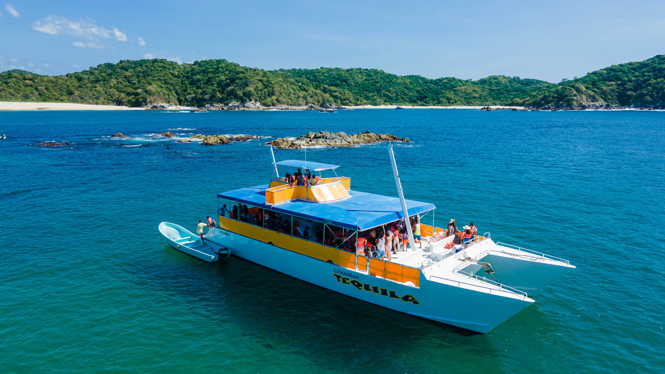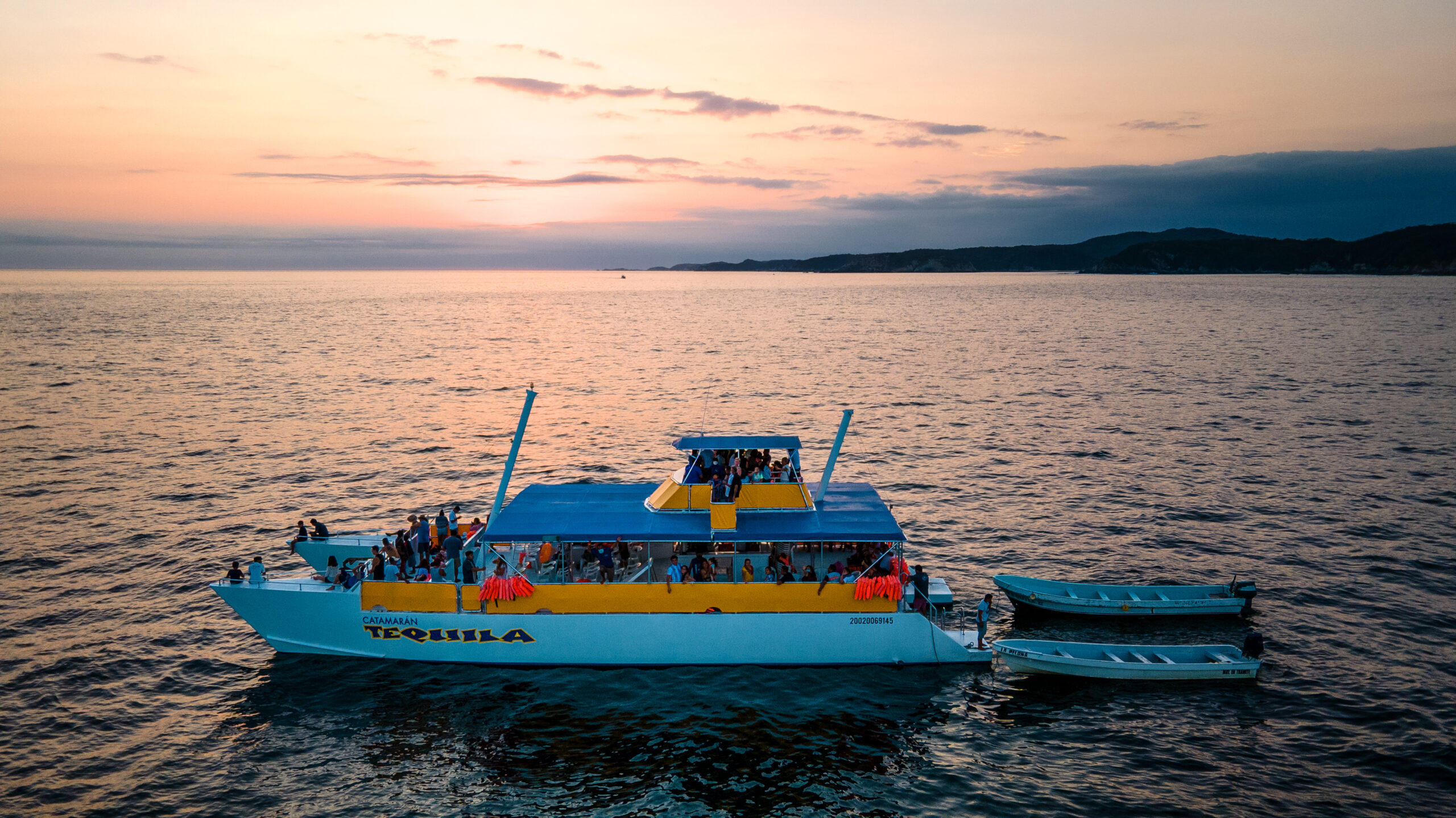 Disfruta una experiencia inolvidable a bordo del Catamarán Tequila, una embarcación amplia y cómoda que opera todos los días. Este tour compartido recorre las 7 bahías más icónicas de Huatulco, combinando paisajes espectaculares, snorkel, comida y diversión para todas las edades.